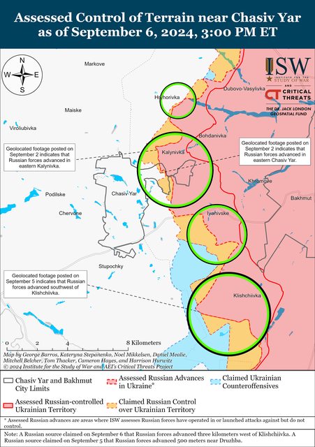 9月6日,俄羅斯軍隊繼續在Chasiv Yar方向