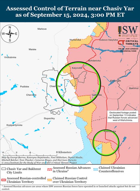 9月15日,俄羅斯軍隊繼續在恰西夫亞爾