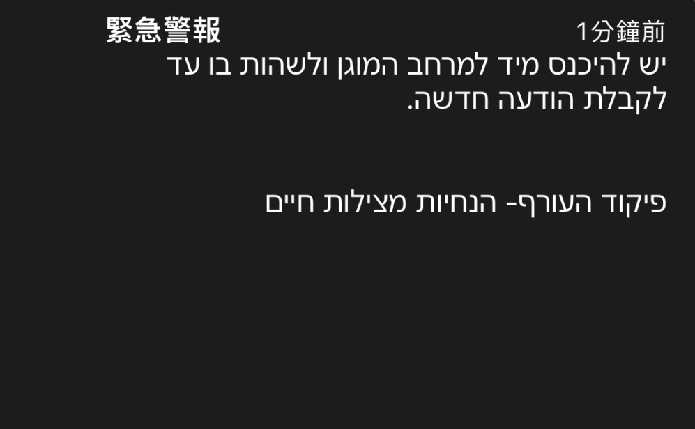 → alegria : 以色列中部這次真的風聲鶴唳了 10/02 00:29