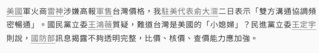 暢通」。國民黨立委王鴻薇質疑,難道台灣是美國的「小媳婦」?民進黨立委王定宇則說