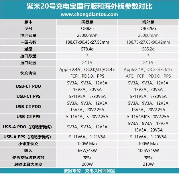 國際版跟原版差別最大的地方在於多口PD輸出功率提升了很多,協議分配改的更為合理,原