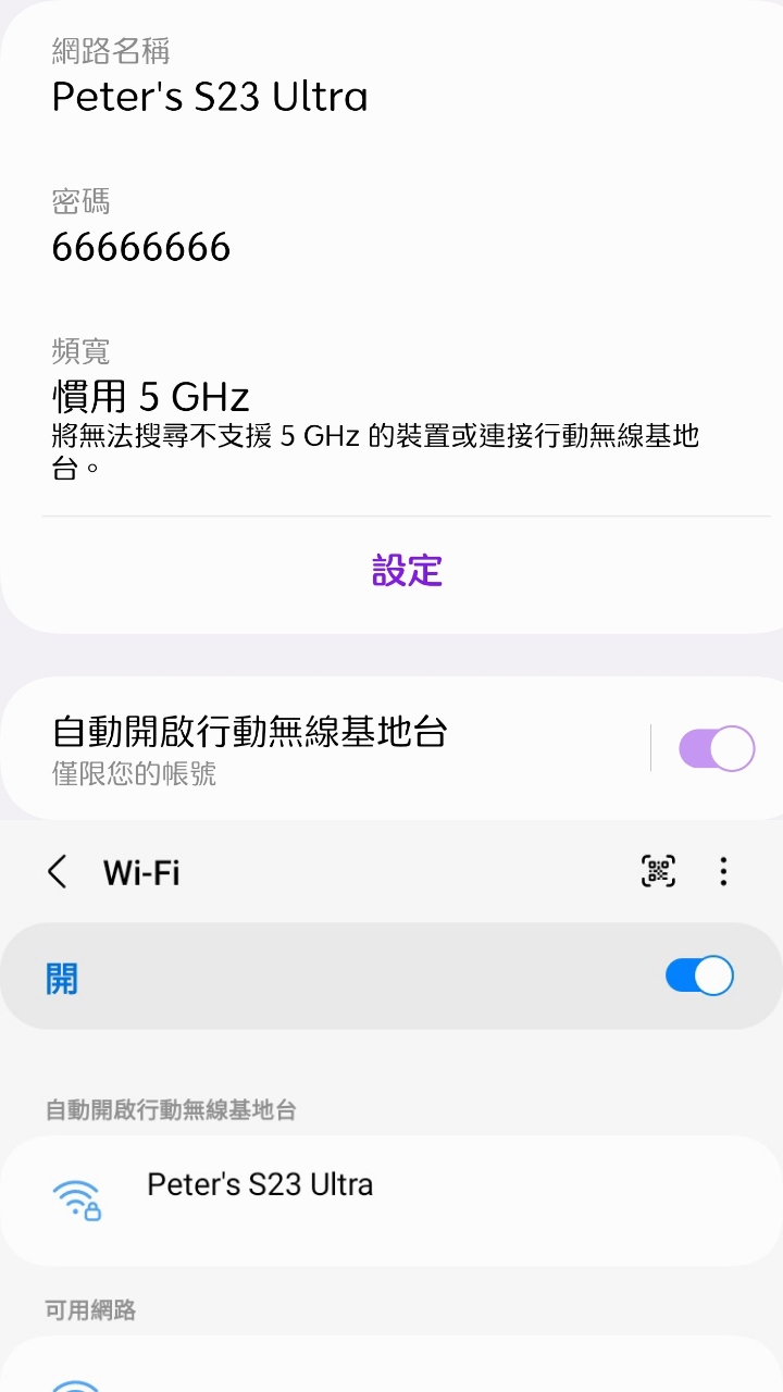→ crono0 : 熱點我自己用S23+ 跟TAB S8 手機設定自動熱點08/30 22:00