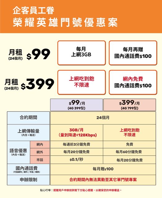 推 em4 : 台哥企客399有送贈品 是21m吃到飽 09/05 11:28