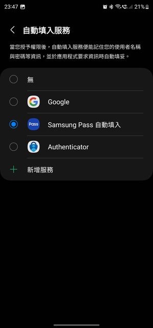 感謝樓上兩位大大,我真的自動填入服務預設是samsung pass