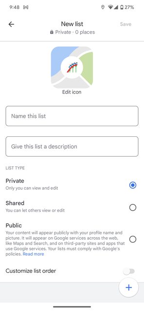 搜尋了一下沒看到板上有討論 突然發現Google Map可以編輯地點清單的圖示 http://i.imgur.com/3kNrXgb.jpg