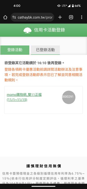 kintaro1219 : 信用卡登錄跟登錄Momo幣都有搶到也太強了吧! 11/18 11:57