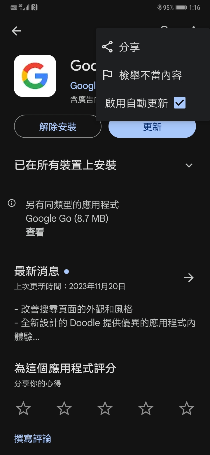 推 pda2001 : google app自動更新會硬上 取消更新沒用的 11/28 13:34