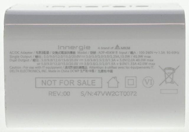 ▼本體其中一個較小的側面印上商標、”A brand of Delta”字樣、型號、輸入/輸出規