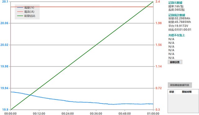 ▼USB-C2單獨使用下固定檔20V輸出負載測試,隨著電流增加,輸出電壓下降,輸出電流