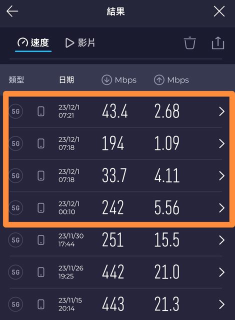 doubi : 測速本來就會因為地理位置不同、基地站分佈不同而 12/01 08:58