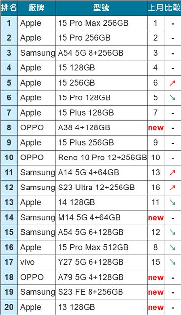 【2023 年 12 月台灣手機銷售排行榜 TOP 20】