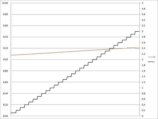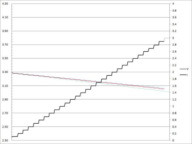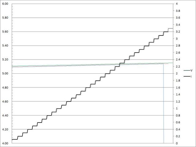 出電流超過3.1A大幅壓降,超過3.2A截止