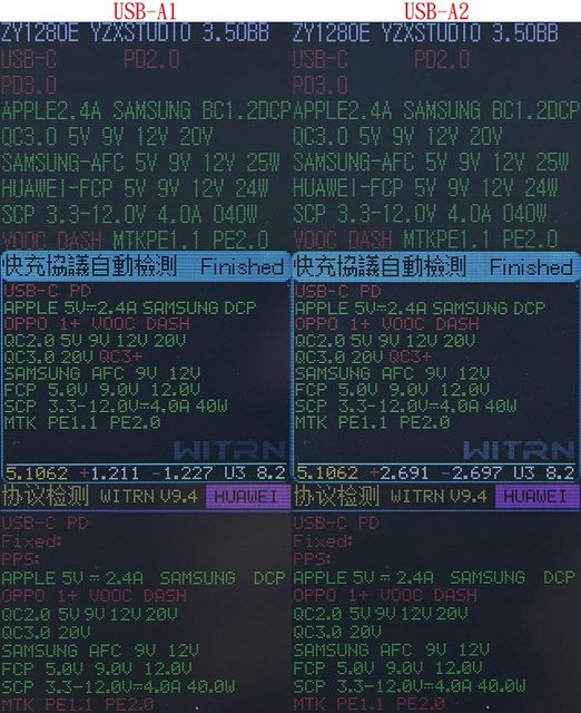 、SCP、Apple 5V/2.4A、SAMSUNG 5V/2A、BC1.2DCP、MTK PE1.1/2.0