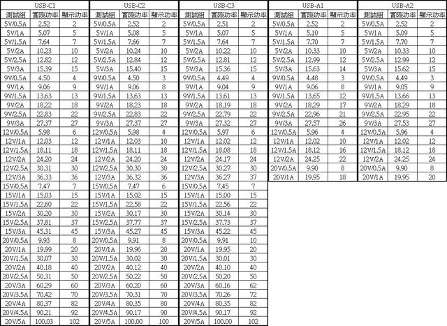 ◆USB-C固定組除20V輸出先升後降外,其他輸出帶小幅補償,USB-A輸出帶補償
