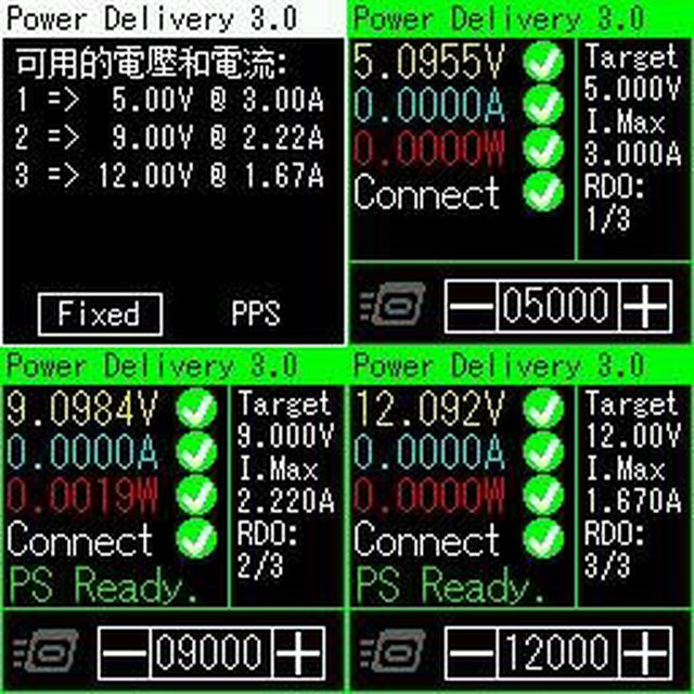 ▼多埠輸出下,分配到20W輸出的USB-C埠,固定檔提供5V/3A、9V/2.22A、12V/1.67A