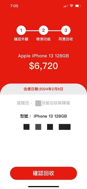 iPhone 13 128GB估出來的回收金額是$8160