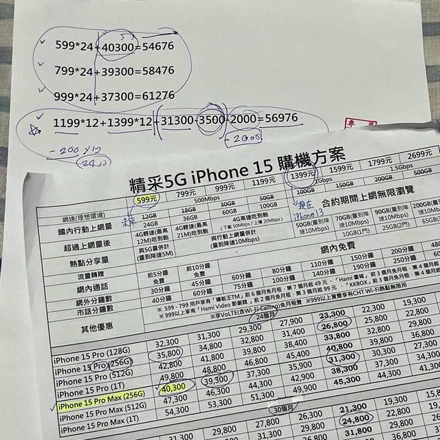 所以以舊機換新機折抵後iPhone 15 PM價錢是$36740