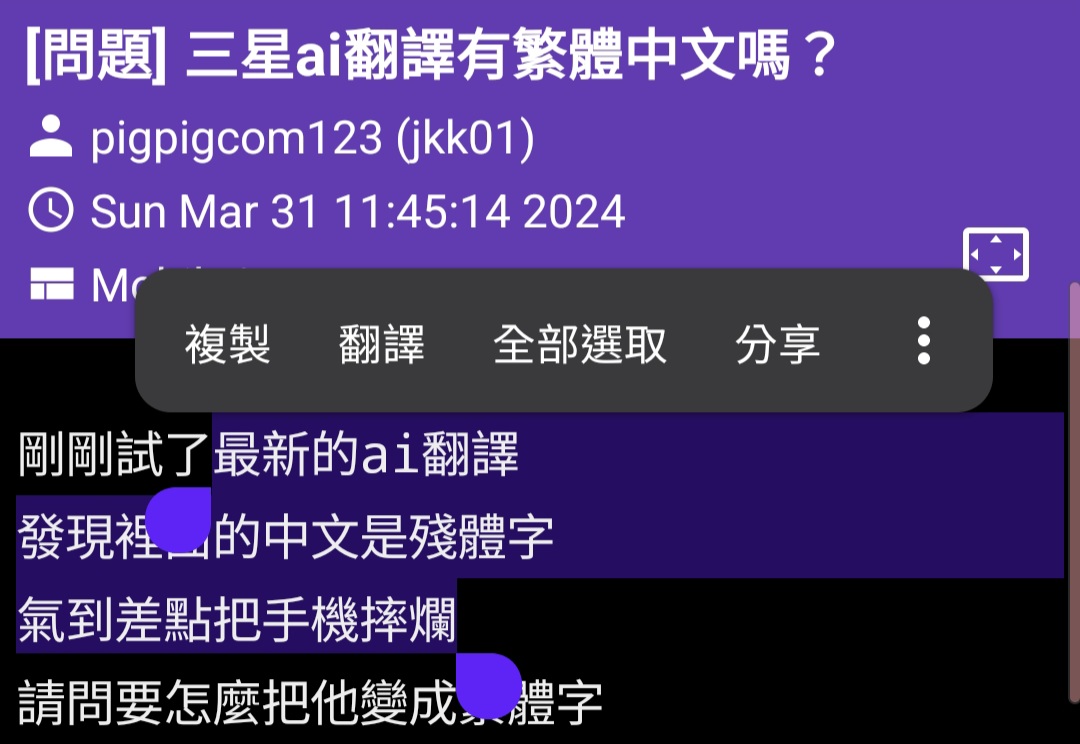 → battlewind : ai作為主打功能不花心思繁中本來就該噴 三星是很便 04/02 10:52