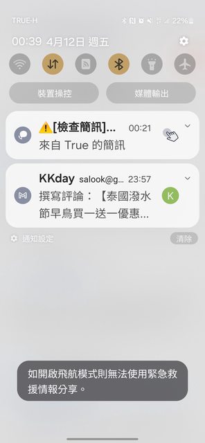 發現按了會出現"如開啟飛航模式則無法使用緊急救援情報分享"的提示