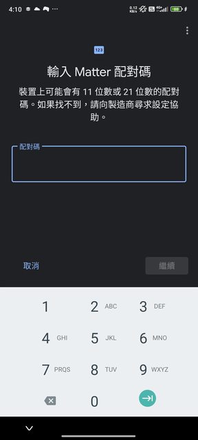 他說要設定Matter配對碼