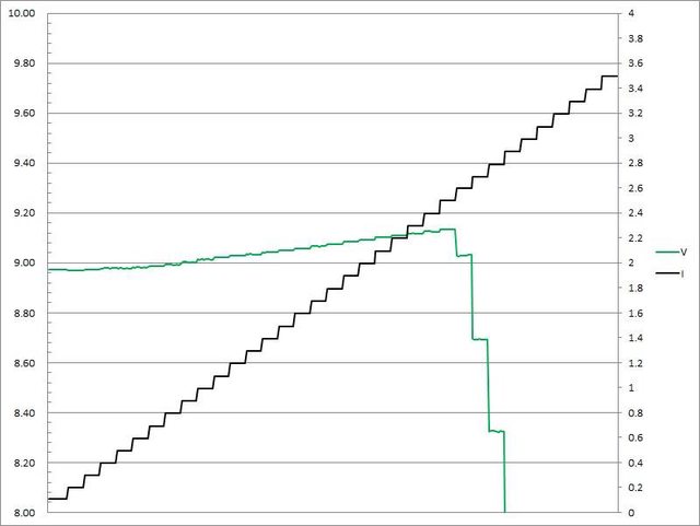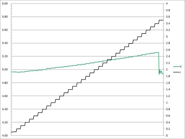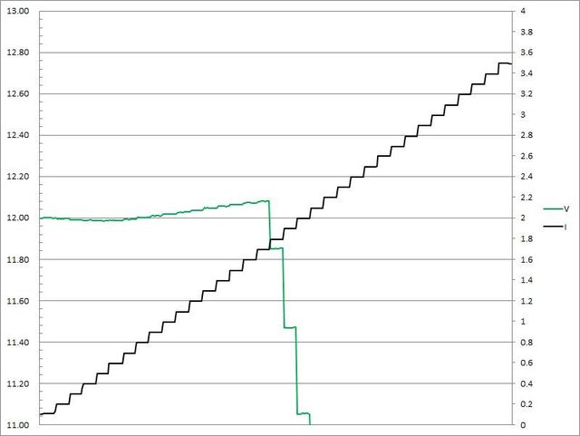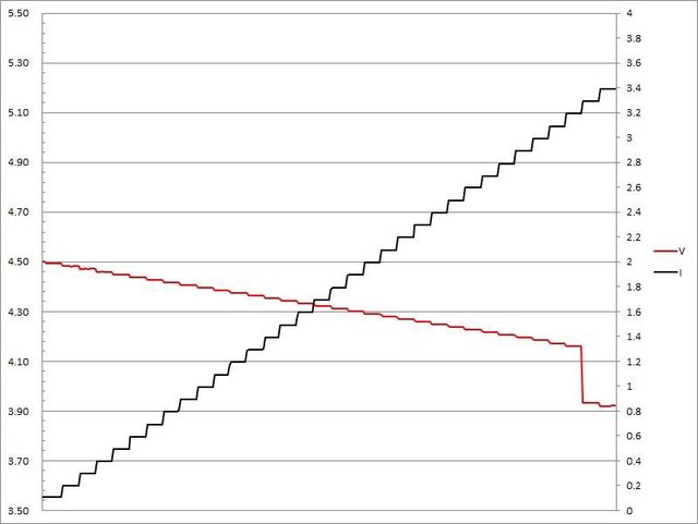 超過3.2A大幅壓降,超過3.4A截止