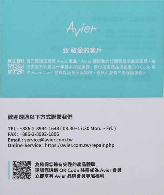 ●Avier CARE提供1年保固及3000萬產品責任險