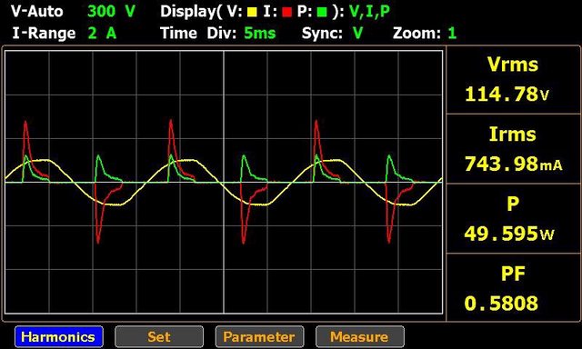 ▼USB-C輸出45W的交流輸入電壓/電流/功率波形如下圖所示