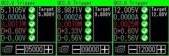 ▼USB-A的5V/9V/12V空載輸出電壓