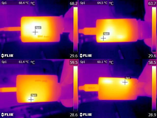 ▼USB-C輸出45W一小時後充電器本體的紅外線熱影像圖
