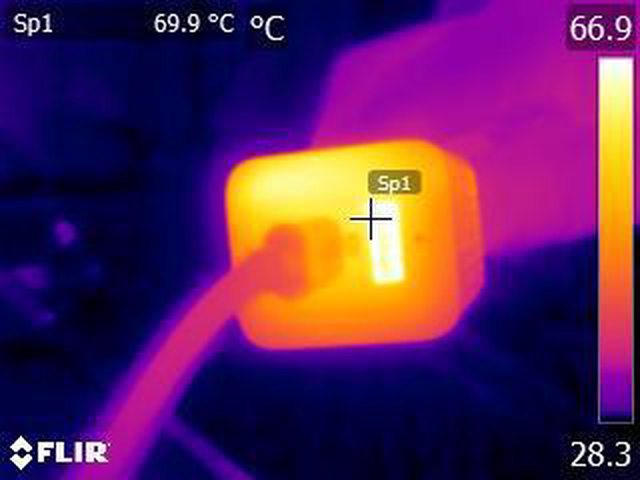 ▼USB-C輸出45W一小時後充電器輸出埠的紅外線熱影像