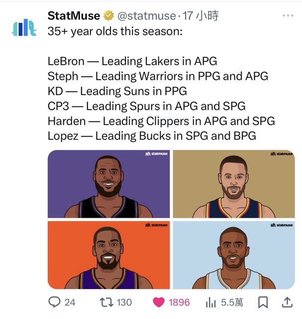知名數據網站StatMuse,今天趁著NBA球賽比較少的美國時間星期四(因為當天