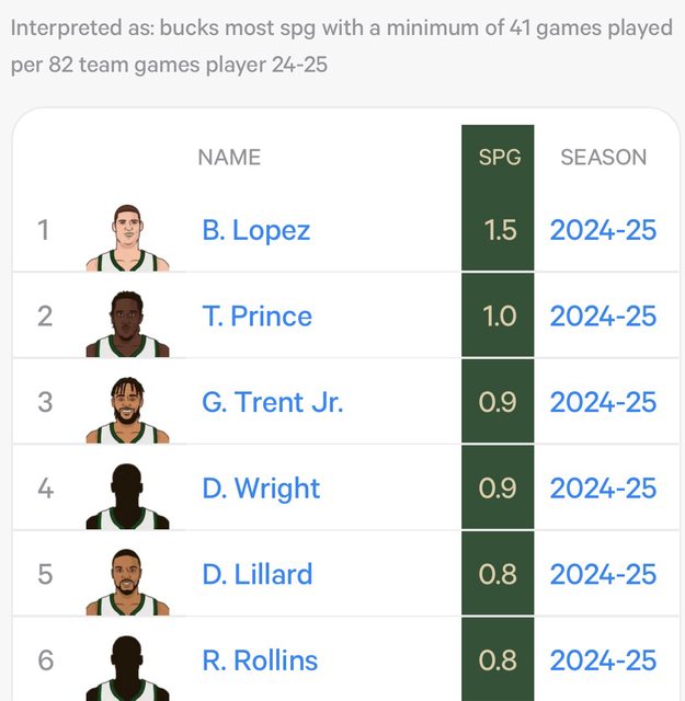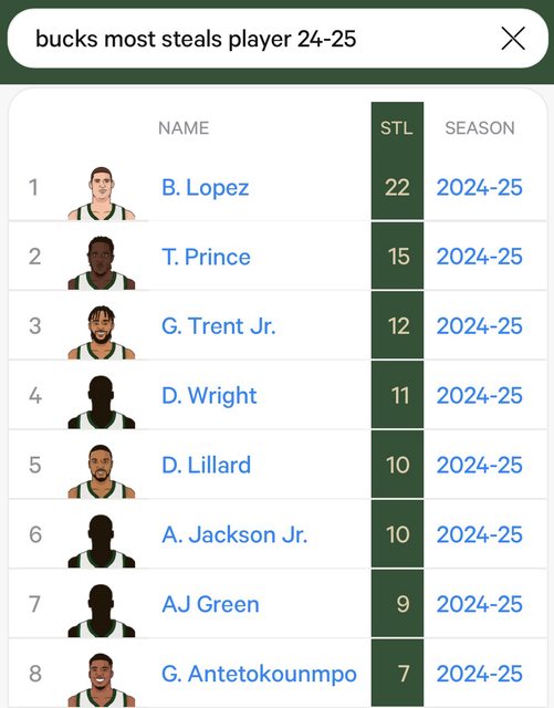 另補充公鹿球員本季抄截總次數排名