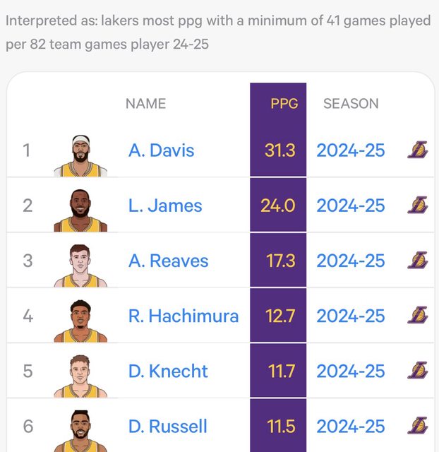 註:也順帶附上湖人隊球員場均得分排名