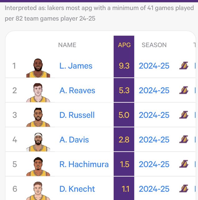 LeBron — Leading Lakers in APG