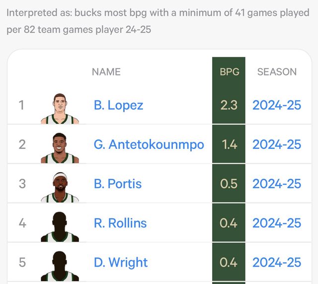 其他公鹿球員場均阻攻次數均低於1