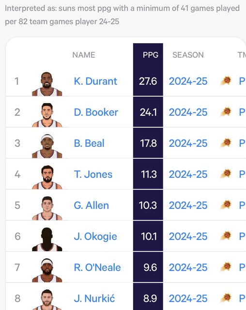 KD — Leading Suns in PPG