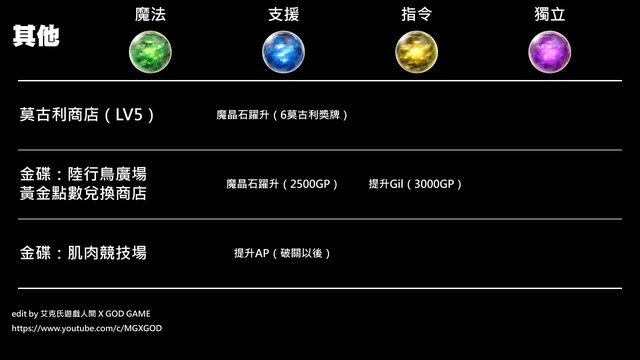 其他就分別是莫古利商店等級5時可以換到魔晶石躍升