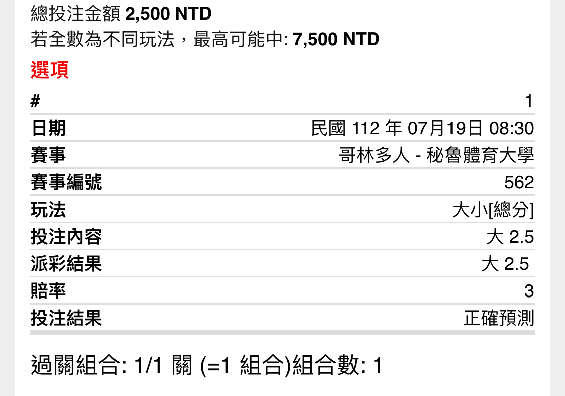 → richard520: 居然上三,我快笑死!結果賽前2.5大賠 60.248.166.132 07/20 00:42