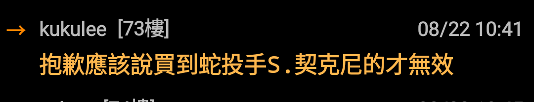 → kukulee: 抱歉應該說買到蛇投手S.契克尼的才無效 118.167.209.77 08/22 10:41
