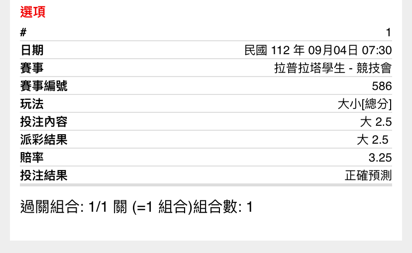 → strawbee: 第二張還在等賠率啊 少贏一半 42.77.65.72 09/04 08:08
