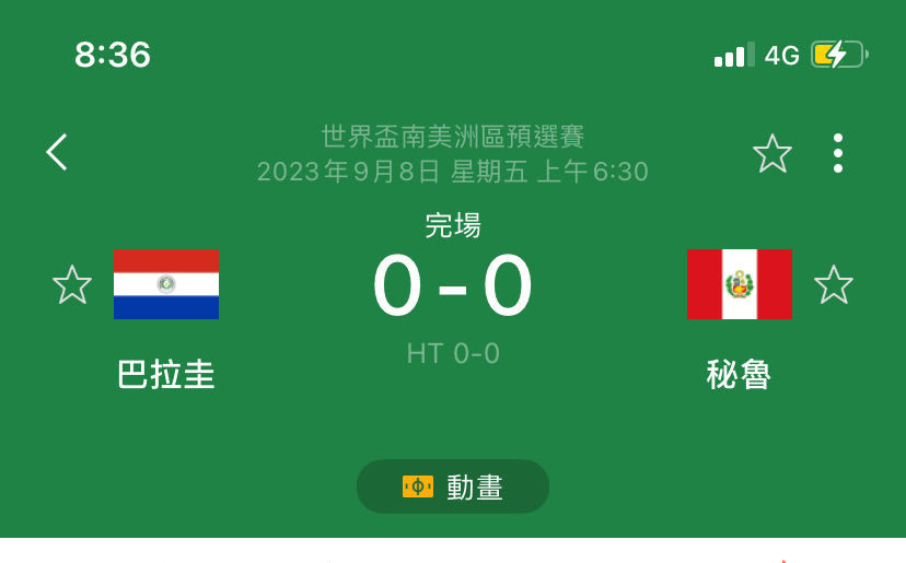 推 patron22: 請問剛剛踢完的秘魯巴拉圭有人知道比數 223.137.40.80 09/08 08:36