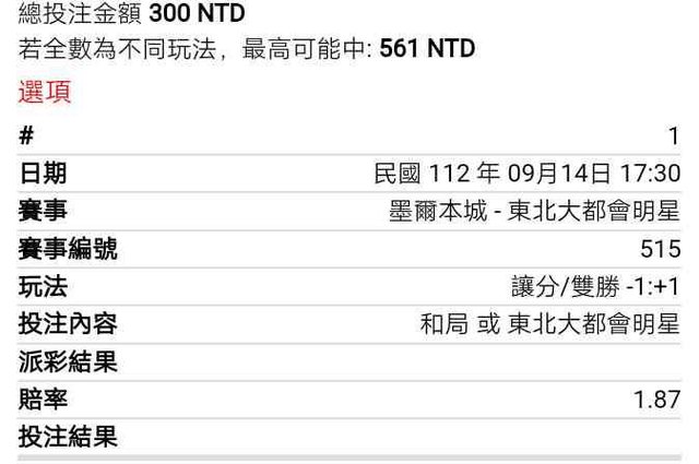 → a9360211: 這樣有贏錢嗎? 例如哪些比數 買這個才 39.15.8.141 09/14 15:25