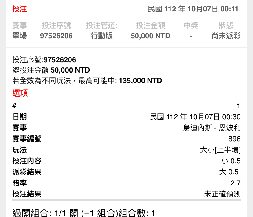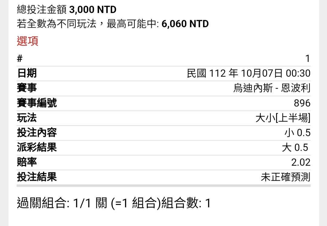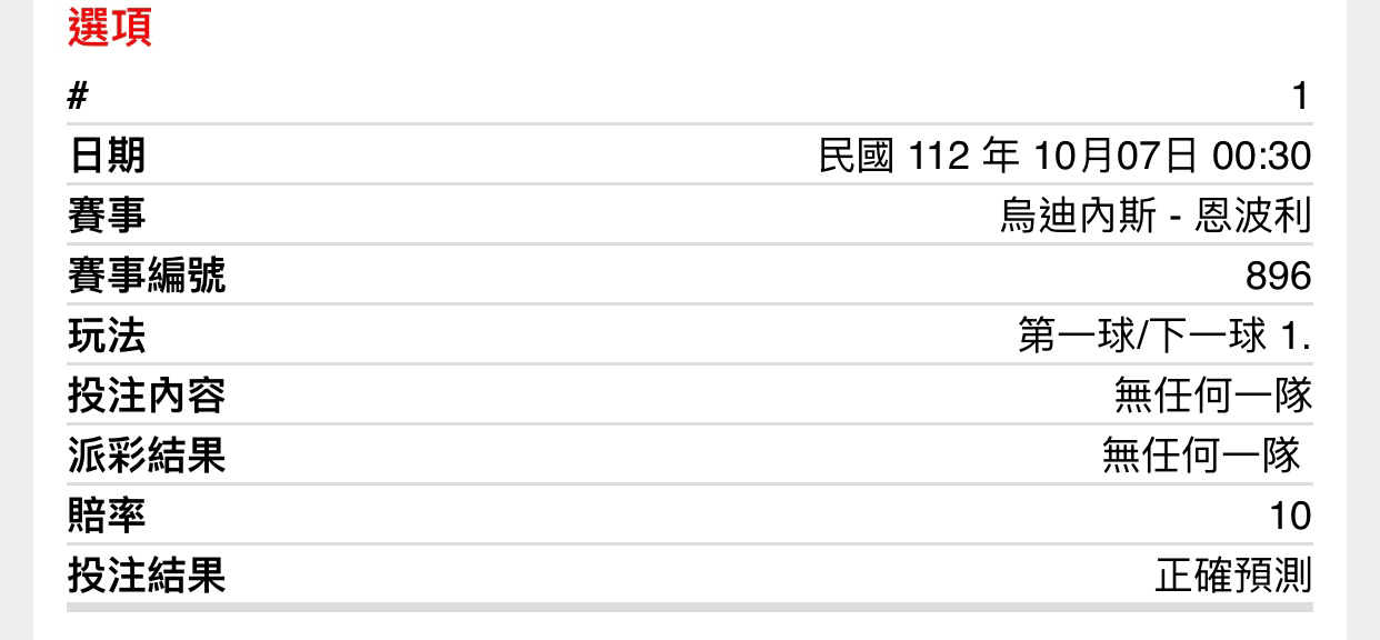 -- ※ 發信站: 批踢踢實業坊(ptt-club.com.tw), 來自: 1.200.69.129 (臺灣) ※ 文章網址: https://ptt-club.com.tw/SportLottery/M.1696608036.A.E8B