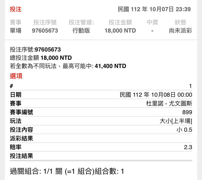 -- Sent from nPTT on my iPhone 8 -- ※ 發信站: 批踢踢實業坊(ptt-club.com.tw), 來自: 1.200.39.223 (臺灣) ※ 文章網址: https://ptt-club.com.tw/SportLottery/M.1696696951.A.300
