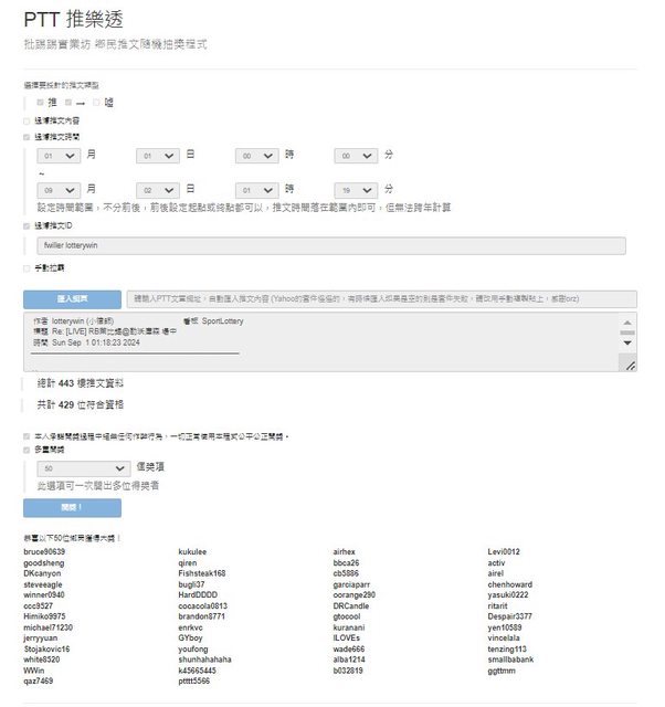 恭喜以上50位得獎者