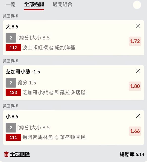 112 洋基紅襪場 大8.5 1.72