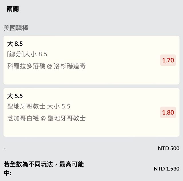 推個MLB清晨4點場,道奇場全場8.5大&教士5.5單隊大~~
