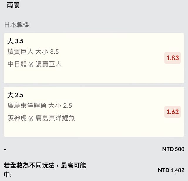 最近連倒9張,希望今天NPB雙主大能轟!