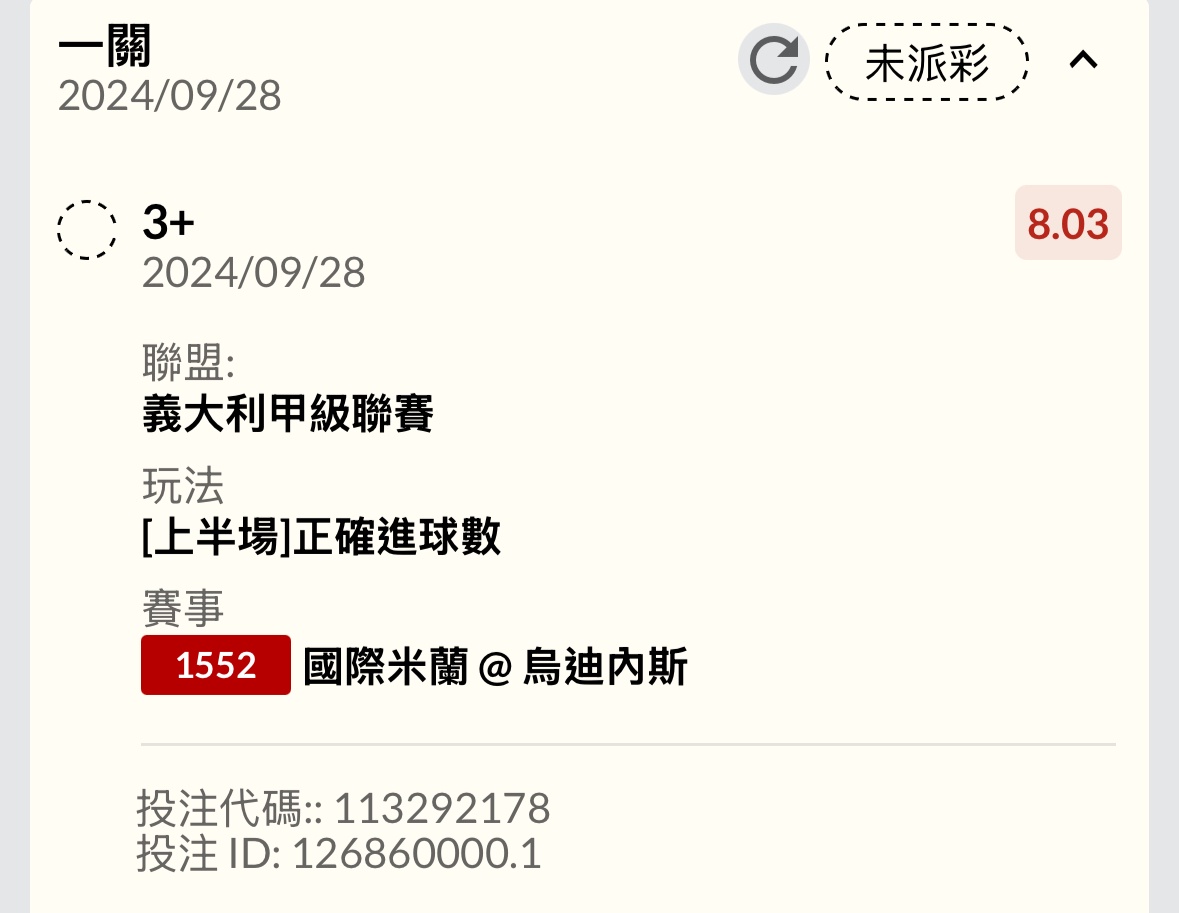→ all035: 沒逆轉 可惜 上3 6 倍多還可以 27.52.8.38 09/28 21:50
