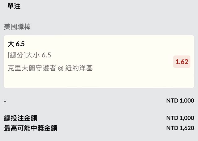賠率太醜買不下去,改買6.5全場大分!